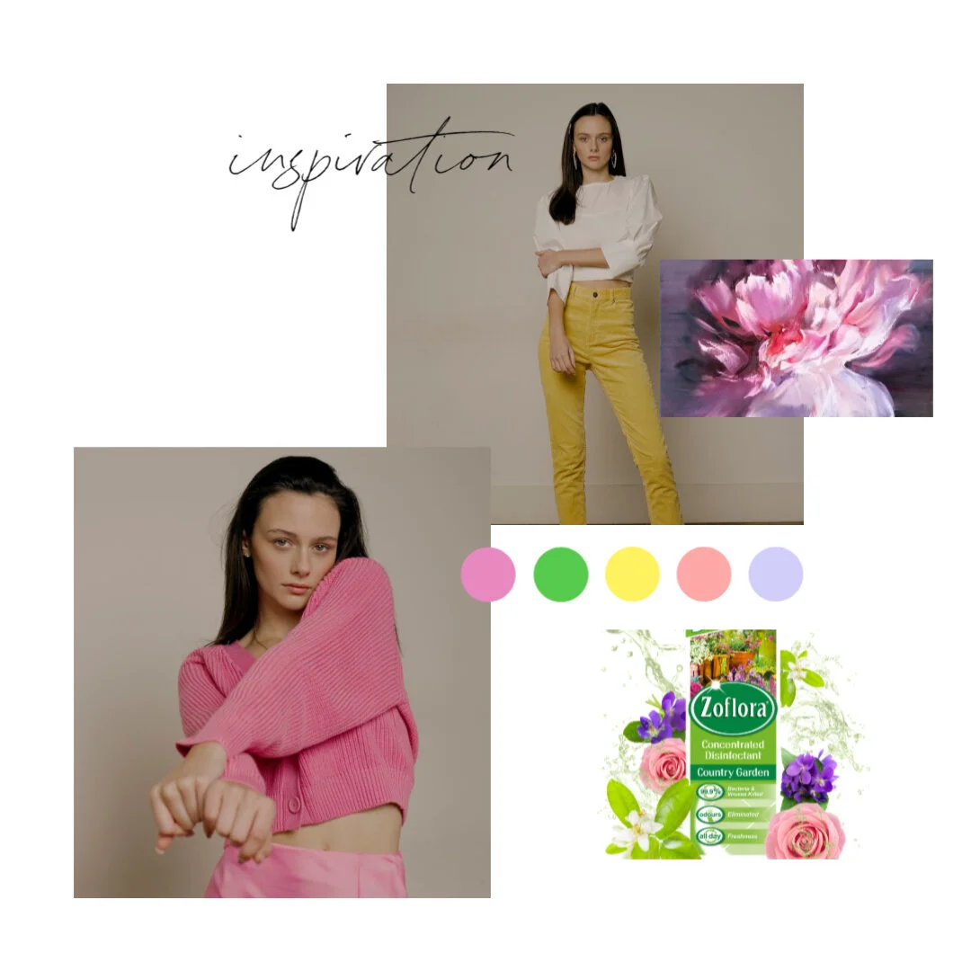 I selected the Country Garden Zoflora product to base my concept around as I was drawn to the colour palette inspired by nature. I decided to create a series of new images that focused more on the whole makeup and fashion look to compare and contrast with the product packing rather than to focus on the macro beauty details as Terry Barber is known for.